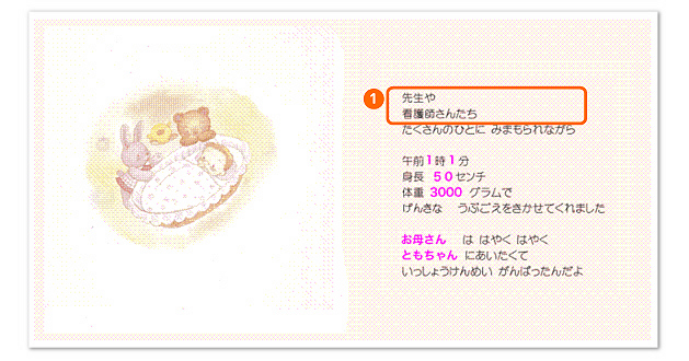 先生と看護婦さんの入力箇所のアレンジ例(ベビー・こどものひ・ひなまつり共通)