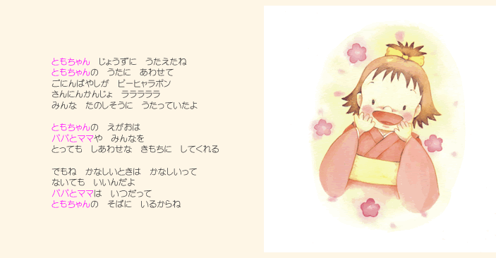「My Book」は自分の子供が主人公になるオリジナル絵本です。 子供の名前を言いながら読む絵本は、最高のコミュニケーションツールになるとともに 子供に対する愛情を、再認識する事ができるのです。