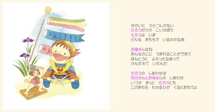 などを、挿入することが可能な、オリジナル絵本です。 また、絵本で一番目立つ、絵本のトップページに