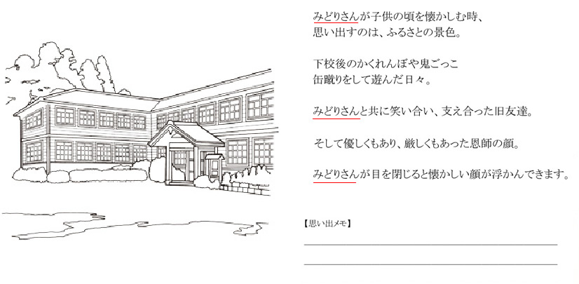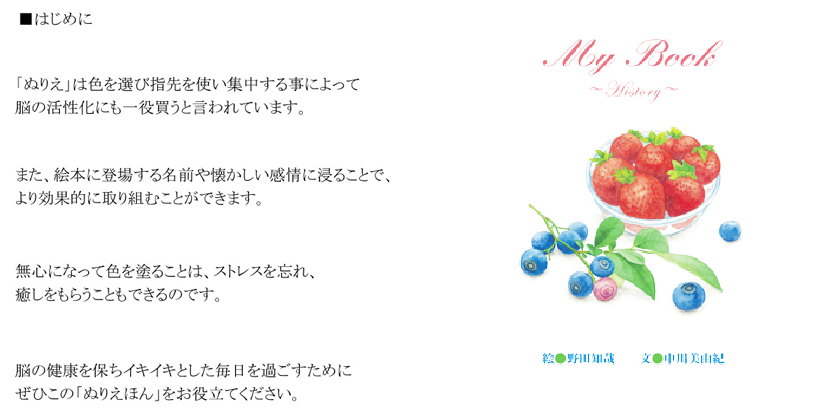 また幼児教材・幼児教室のアイテムや幼稚園、保育園の二分の一卒園式や結婚式、デイサービス、老人ホームの認知症予防の絵本製作、英会話教室の学習、ホテルのお子様記念日など。