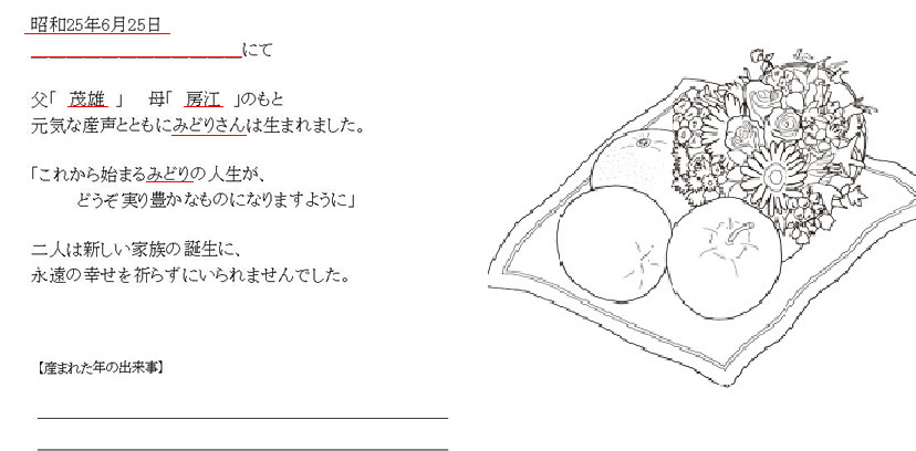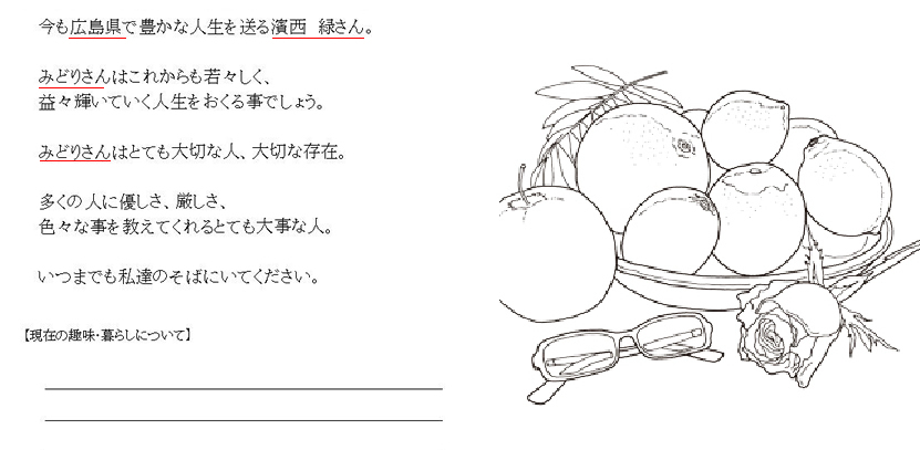 単純に「簡易バージョン」を贈り物としてお使い頂いても結構ですが、ご希望の施設様には今までの人生を振り返りながら