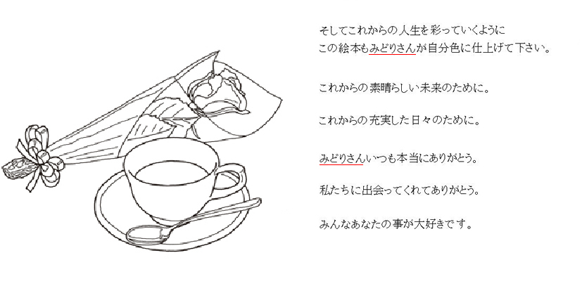 ある施設様で数名の絵本を製作させて頂いたのですが、数日後「この度は本当に素敵な絵本をありがとうございます。自分の名前が入った絵本を見て、全員が涙を流し喜んでくれました。」